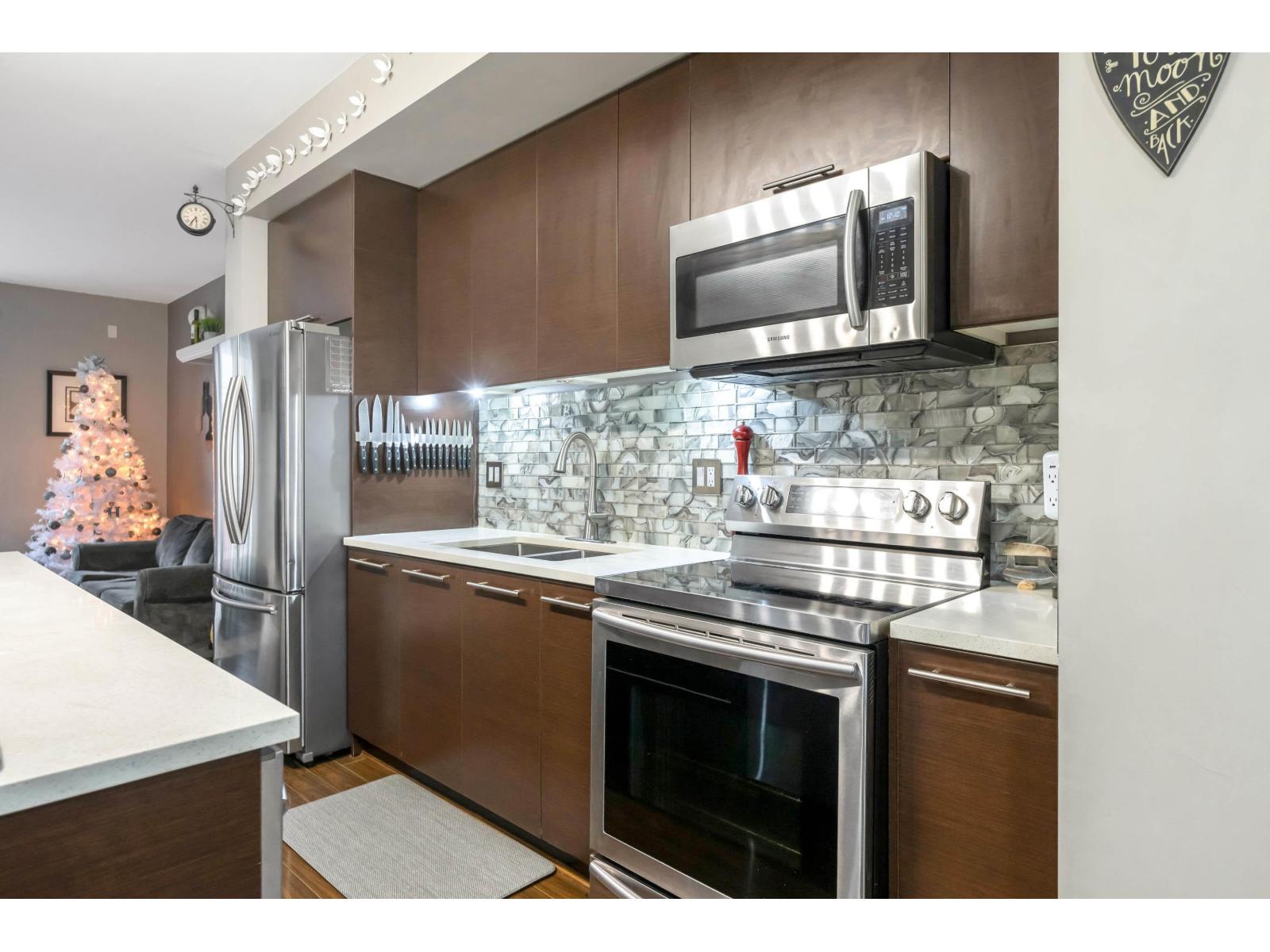 THE KEW by Mosiac. This fabulous Townhome is move in ready! WELL MAINTAINED with 2 bedrooms, 2 bathrooms up and bonus den on lower level perfect for the kids, home office or a 3rd bedroom. The open concept plan on the main level is a entertainers dream with the living room boasts an ashlar fireplace and built in cabinetry. The kitchen is profiled by modern quartz countertops, stainless steel appliances, large island and flows into the ample sized dining area. The good sized deck provides that extra space needed for a crowd! Room for 2 car parking! (id:9345)...