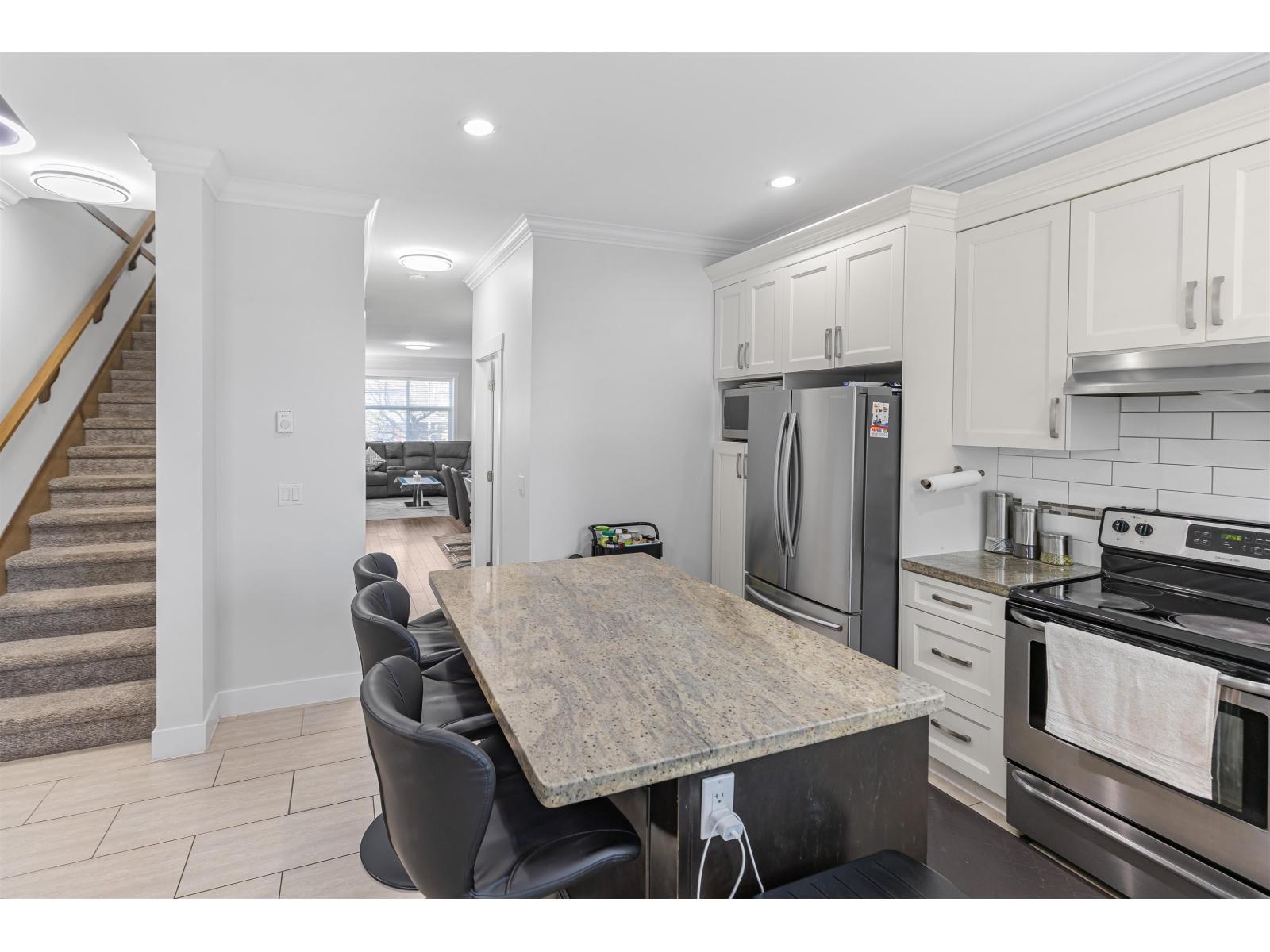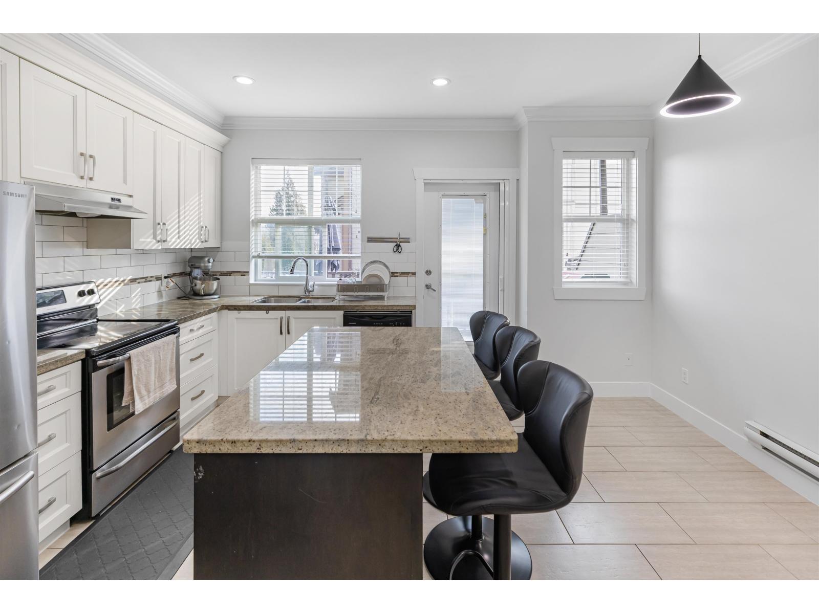 Welcome to Marshall Mews! This bright and stylish townhome, just recently Updated!! and built in 2014, has 4 beds, 4 baths, and 1,650 sqft of well-designed living space. The kitchen impresses with stainless steel appliances, granite countertops, and modern cabinetry. The inviting living room features soaring ceilings, a cozy fireplace, and large windows. The master suite offers a spacious walk-in closet and a luxurious ensuite. The lower level includes a room with a full bath and its own entrance, perfect for guests or a home office. Conveniently located minutes from the freeway, a short walk to UFV and all Levels of Schools and close to Berry Park and ALL amenities. This is an opportunity you don't want to miss! (id:9345)...