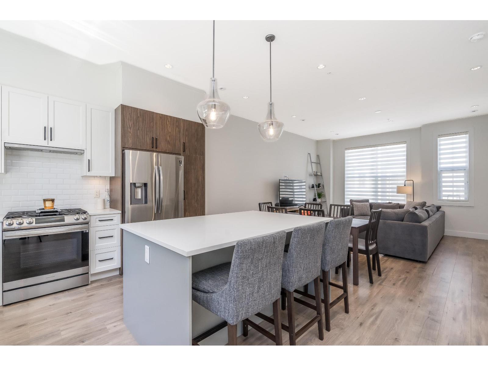 Stunning 4 bed / 4 bath end-unit townhouse in the sought-after Boutique Skylark community. This beautifully designed home features a chef's kitchen w/a large island, premium finishes, and generous storage, perfect for both everyday living and entertaining. The bright open layout offers 10-foot ceilings & a spacious living area filled w/ natural light. Upstairs the luxurious primary bedroom boasts a spa-inspired ensuite, alongside two additional well-sized bedrooms & convenient upper-level laundry. The lower level provides a versatile fourth bedroom or home office complete w/a private bathroom & extra storage. Additional highlights include central air conditioning, a high-efficiency furnace, and a rare side-by-side garage. Ideally located within walking distance to Carvoth Park. (id:9345)...