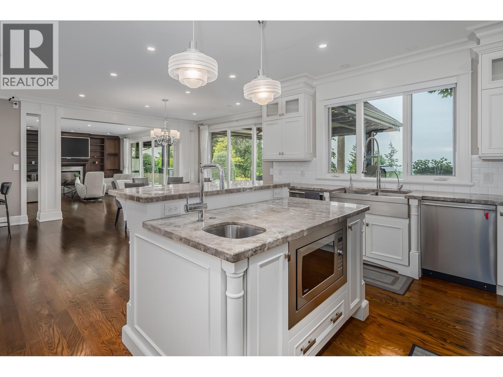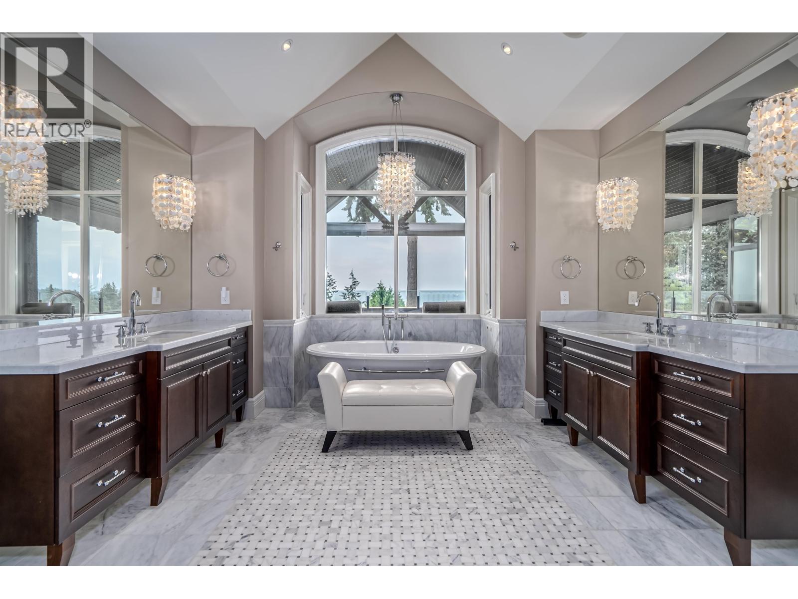 Nestled amidst stunning ocean views, this spectacular property offers over 8600 square ft of refined living space and is situated at the most sought after Dundarave area. The grand foyer leads to formal living, dining and kitchen areas that open onto a spacious covered balcony complete with ceiling heat, BBQ area, and a "negative-edge" hot tub - ideal for year-round entertainment. Upstairs are 4 ensuite bedrooms with 3 boasting balconies that capture breathtaking ocean vistas. 2 flex rooms over the garage serve as additional living space catering for diverse needs. Lower level features a home theatre, a custom built 2-storey wine cellar, wet bar and 2 guest ensuites, all opening to a beautiful garden with an outdoor swimming pool. Don't miss the opportunity to make this your dream home. (id:9345)...