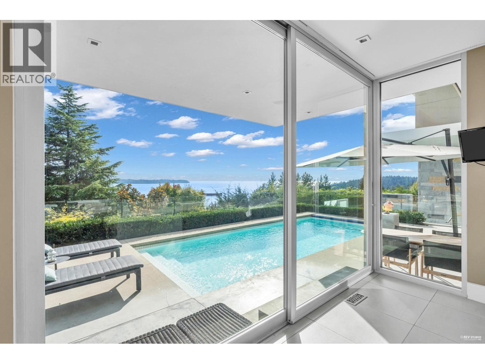 Architectural masterpiece in prestigious Rockridge! This 5,748 square ft contemporary residence on a 12,633 square ft south-facing lot captures breathtaking ocean, city and sunset views from all levels. Built with concrete, steel and glass, it showcases soaring ceilings, floor-to-ceiling windows, radiant heat, A/C, and a state-of-the-art smart home system. Features 5 beds, 7 baths, gourmet kitchen with top-tier appliances, media room, wine cellar, and elegant indoor-outdoor flow. Resort-style pool, spa, terraces, and landscaped gardens offer ultimate privacy. Close to Caulfeild Elementary and Rockridge Secondary. (id:9345)...